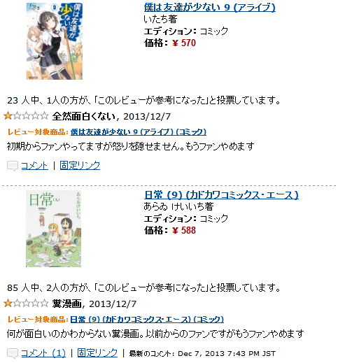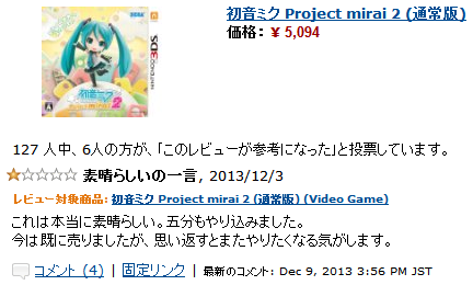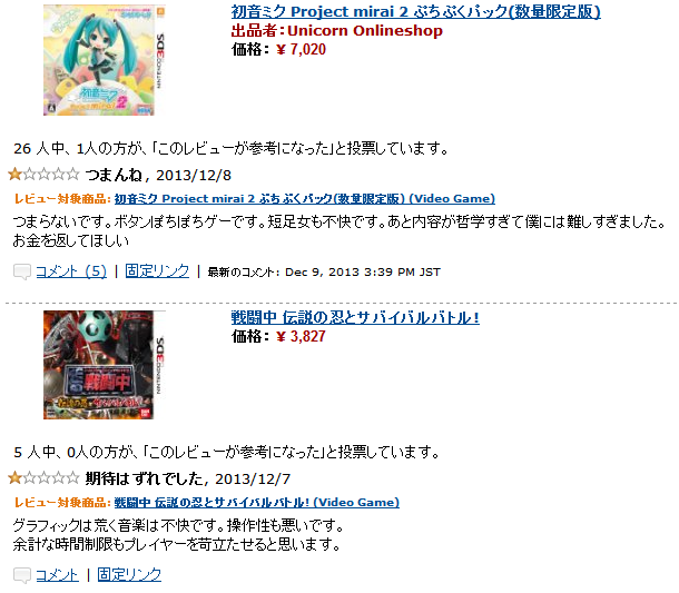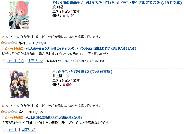 2週間で☆1が90以上wwww http://www.amazon.co.jp/gp/cdp/member-reviews/A35FYJ2ESE3HEX?ie=UTF8&sort_by=MostRecentReview