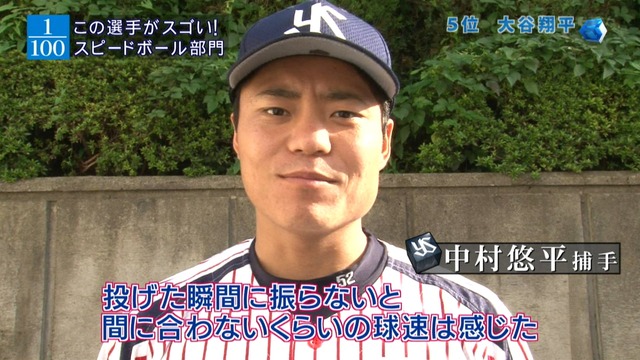 吉川かなC 5位 大谷翔平 4票金子「スピードを出すのもセンス」中村悠平「投げた瞬間に振らないと間に合わないくらい」 上田「こんな球を投げる18歳がいるんだ」