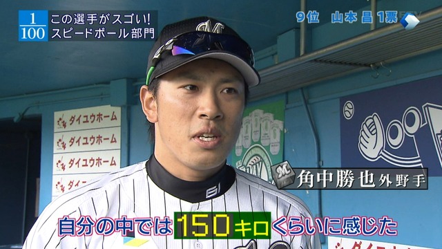 浅村うてそうだったけどなw 栗山はあかんw 番外編ここまで150キロオーバーの選手ばかりだが角中が選んだのは?「あくまで体感なのですが、山本昌さんですね」「球の出どころが見えにくく、自分の中では150キロくらいに感じた」それを聞いた昌さん「本当に率直に言うと嬉しいですよね」「次に角中くんと対戦する時は もっと良いストレートをお見せしようと思います」