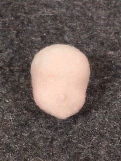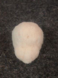 いつもは別に頭部を作っておいて 最後に体につけるやり方でしたが、 今回は体のバランスがとりづらかったので 先に頭を作って体と一体化させてから 手足の長さ等を決めることにしました 下地用羊毛で大体の形を作ります