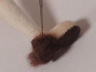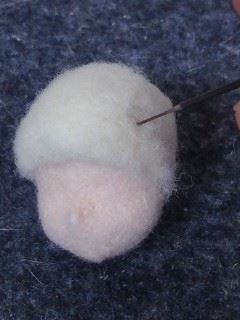 肌色の羊毛で色付け わかりにくいですが鼻もつけています