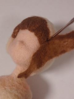 髪の毛をつけます まとまった髪型なので下地用羊毛でどんどん作っていきます