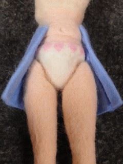 どうせ制服で隠れるので胸には細工しませんでしたが アニメで下着姿が出てきたので せっかくだからパンツに模様をつけておきました 白の羊毛を刺して靴下を履かせます