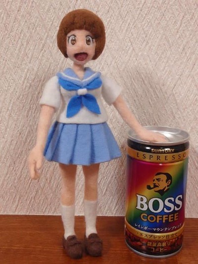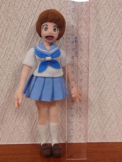 羊毛フェルトとは羊の毛を特殊な針で刺していき、 繊維をからめてフェルト状にしながら好きな形を作っていく手芸です 今回はアニメ『キルラキル』に登場する満艦飾マコを作ってみました あらかじめ作ったものを携帯で撮りだめしてあります 前作ったのはこんな感じ